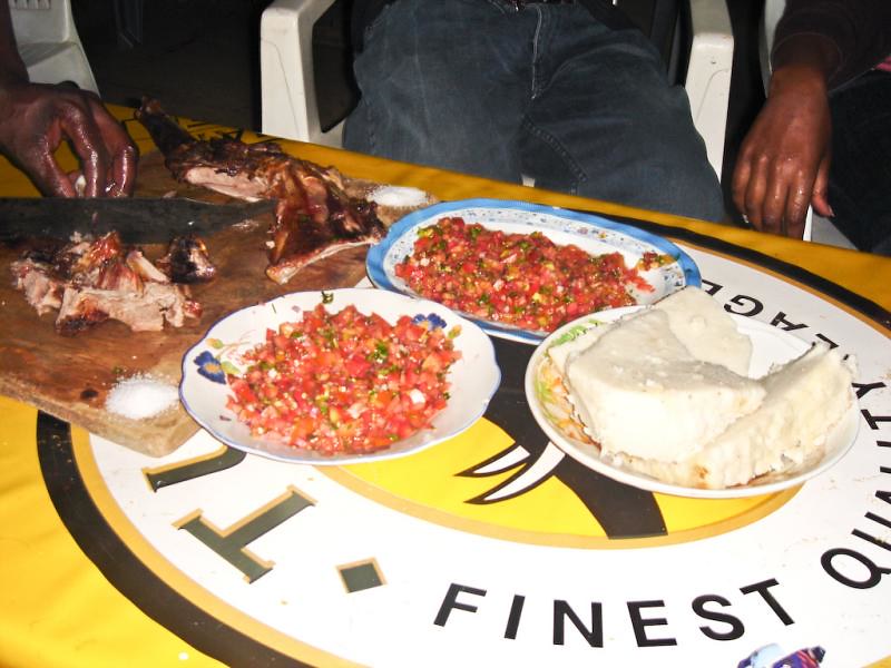 If there is one thing you would call the national dish then it is nyama choma. It is usually the only food available in a bar that will also have beer and music. This is barbequed meat and you can usually choose which meat you would like.