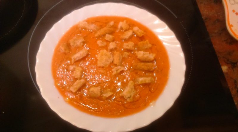 This Gazpacho can also be served, thinned with additional water, in tall glasses for sipping, without the garnishes.